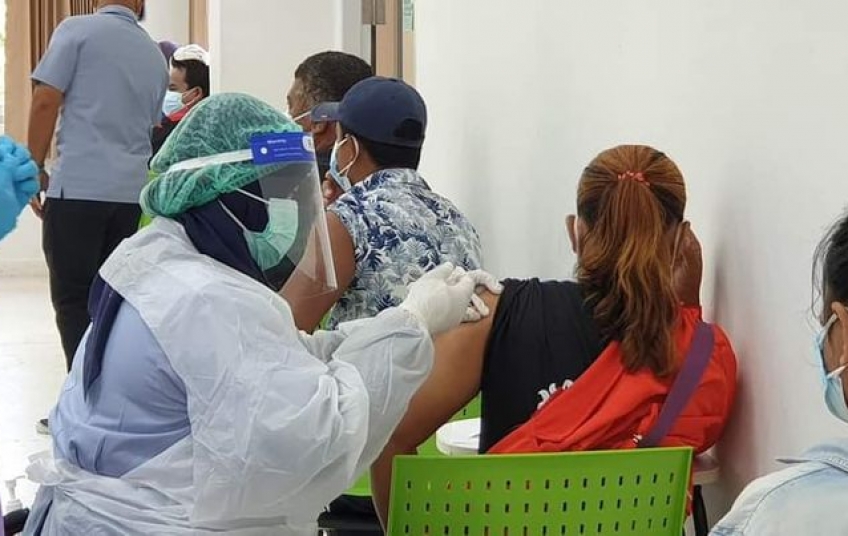 ด้านแรงงานต่างชาติ กล่าวว่า วันนี้มารับบริการฉีดวัคซีน รู้สึกดีใจ และได้ซื้อเสื้อวัคซีนจากศูนย์ฉีดฯ เป็นที่ระลึกด้วย เก็บไว้ใส่เองว่าตนได้ฉีดวัคซีนแล้ว
