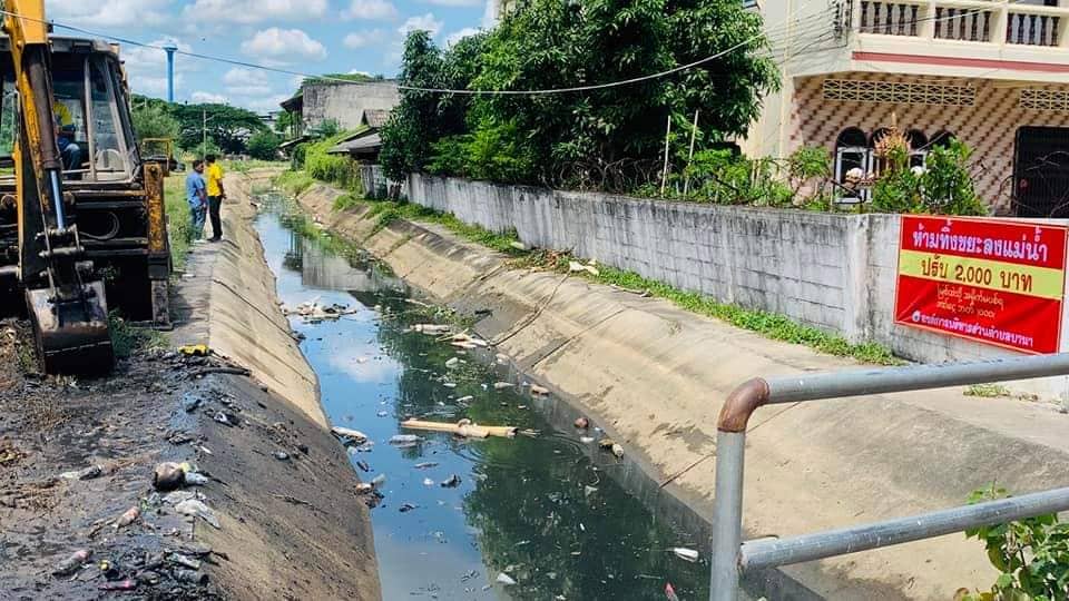 อบต.บานา แก้ปัญหาขยะหมักหมมในคลองระบายน้ำ ซ.เจริญสุข ถ.นาเกลือ ขึ้นป้ายเตือนภาษาเมียนมาร์ "ห้ามทิ้งขยะ"ลงในแม่น้ำ ปรับ 2,000 บาท