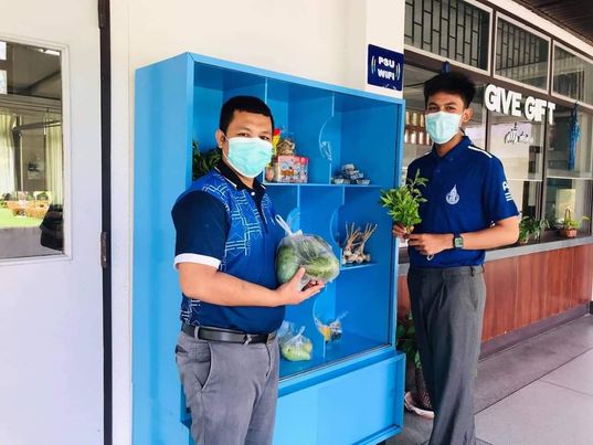 ผู้สื่อข่าวรายงานบรรยากาศ กิจกรรม "แบ่งปันด้วยความรัก ผ่านตู้สีบลู" วันจันทร์ที่ 21 มิถุนายน 2564 ณ อาคารสำนักงานอธิการบดี ม.อ.ปัตตานี ซึ่งเป็นกิจกรรมที่จัดขึ้นโดยศูนย์ศิษย์เก่าสัมพันธ์และกิจการพิเศษ ม.อ.ปัตตานี ทุกเช้าวันจันทร์ บุคลากร อาจารย์ นักศึกษา ม.อ.ปัตตานี จะนำพืชผลทางการเกษตร เช่น ผักสด ผักสวนครัว ผลไม้ ขนม เครื่องอุปโภคบริโภค ตลอดจนของใช้ มาแบ่งปันใส่ตู้สีบลู ส่วนใครที่ต้องการจะปันใช้ประโยชน์ สามารถมาปันเอาไปได้ ตามความต้องการที่จำเป็น กิจกรรมดังกล่าวนี้  จัดต่อเนื่องมาหลายสัปดาห์แล้ว โดยผู้ที่เข้าร่วมกิจกรรม ต่างรู้สึกดี มีความสุขที่ได้แบ่งปัน และมีส่วนช่วยเหลือดูแลกันและกันในช่วงสถานการณ์การแพร่ระบาดโควิด-19 ประชาชนทั่วไปก็ฝากของมาให้ รวมทั้งศิษย์เก่า ม.อ.ปัตตานี ต่างมีส่วนร่วมโดยโอนเงินผ่านบัญชีมาร่วมสนับสนุนกิจกรรมดังกล่าวด้วย ถือเป็นสายใยความรัก ความห่วงใย ที่ส่งถึงกัน อย่างน่าประทับใจ