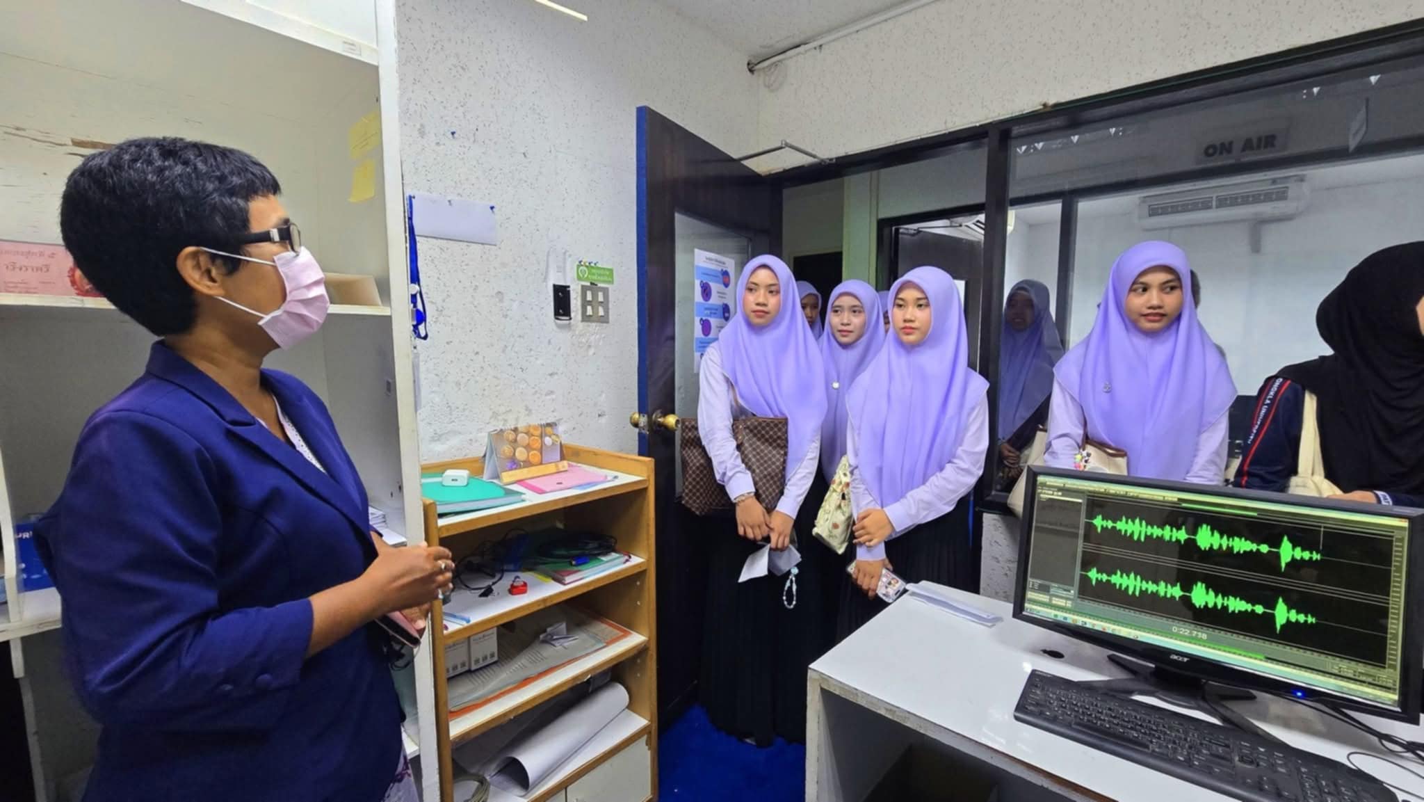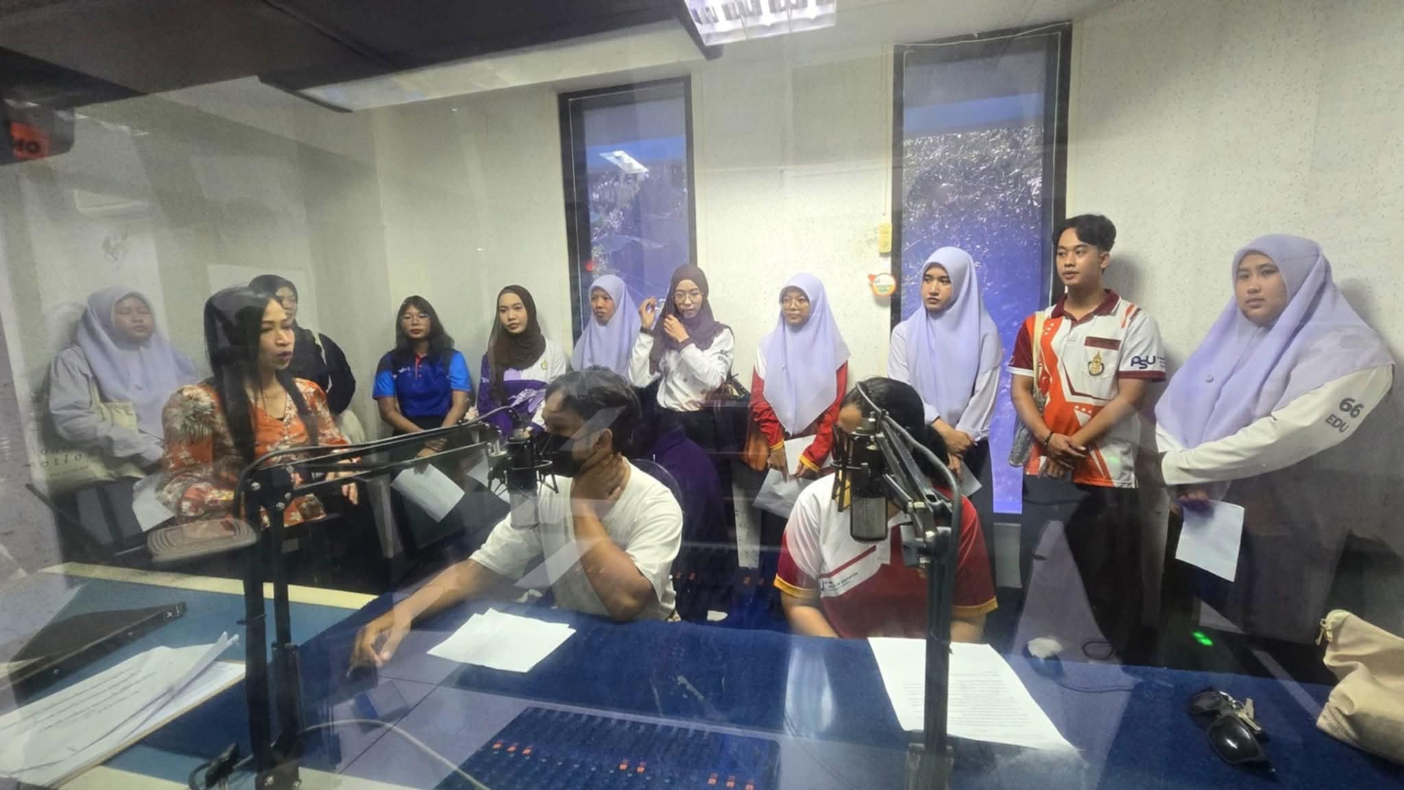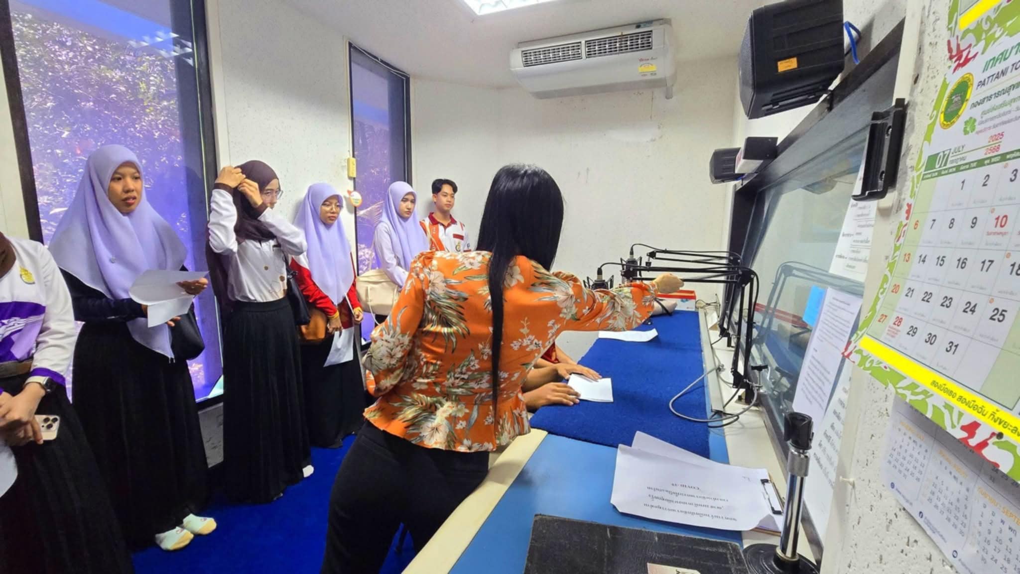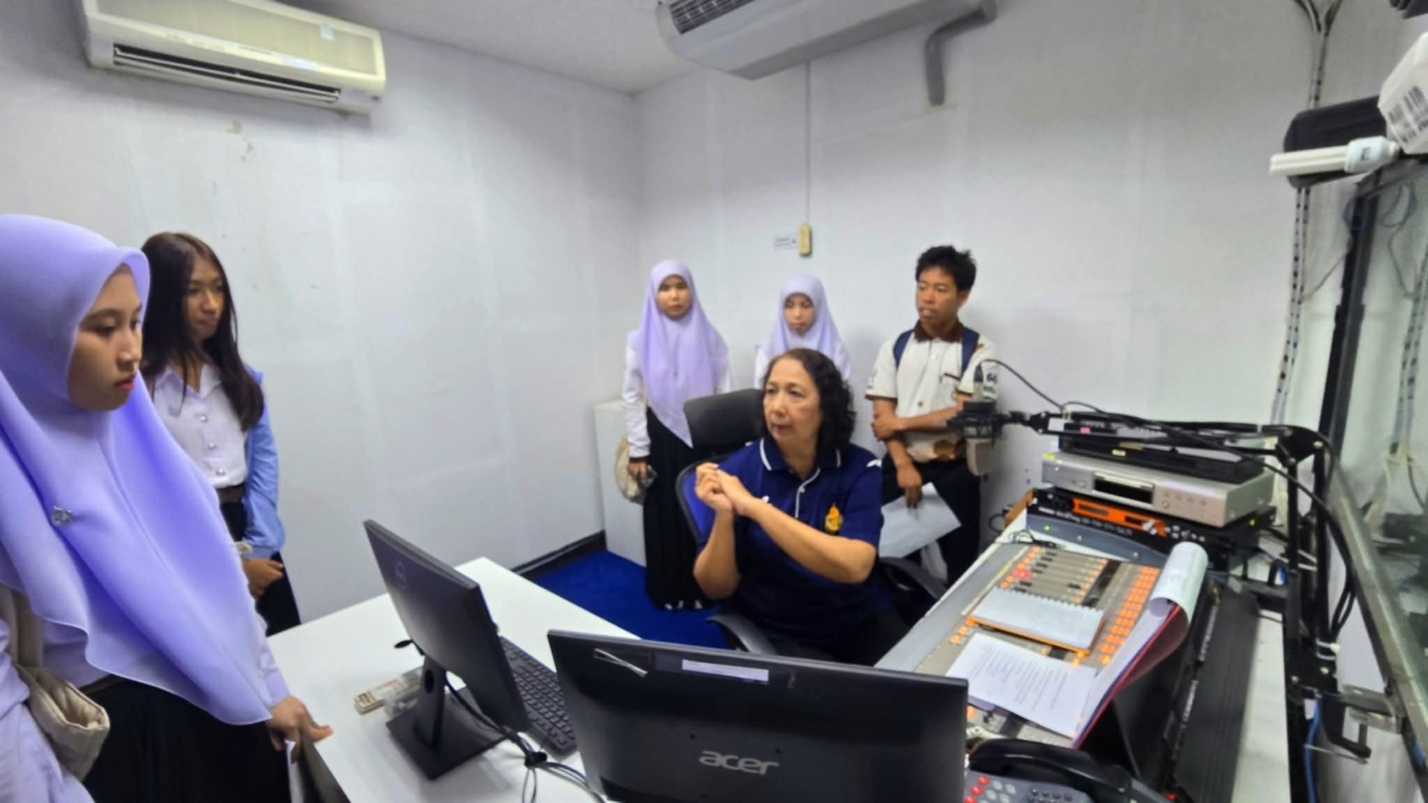 วันที่ 17 กรกฎาคม 2568 ณ สถานีวิทยุ ม.อ.ปัตตานี — นักศึกษาหลักสูตรศิลปศาสตรบัณฑิต สาขาวิชาภาษาและวรรณคดีไทย คณะมนุษยศาสตร์และสังคมศาสตร์ มหาวิทยาลัยสงขลานครินทร์ วิทยาเขตปัตตานี ศึกษาดูงานและฝึกปฏิบัติการออกเสียงภาษาไทย ในรายวิชา “การพัฒนาบุคลิกภาพและการออกเสียงภาษาไทย” (รหัสวิชา 411-111) โดยมี อาจารย์นันทพร แสงมณี เป็นอาจารย์ผู้สอน โดยมีผู้ร่วมกิจกรรม รวม 86 คน