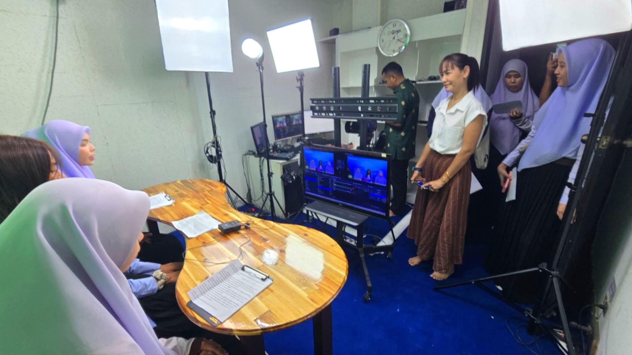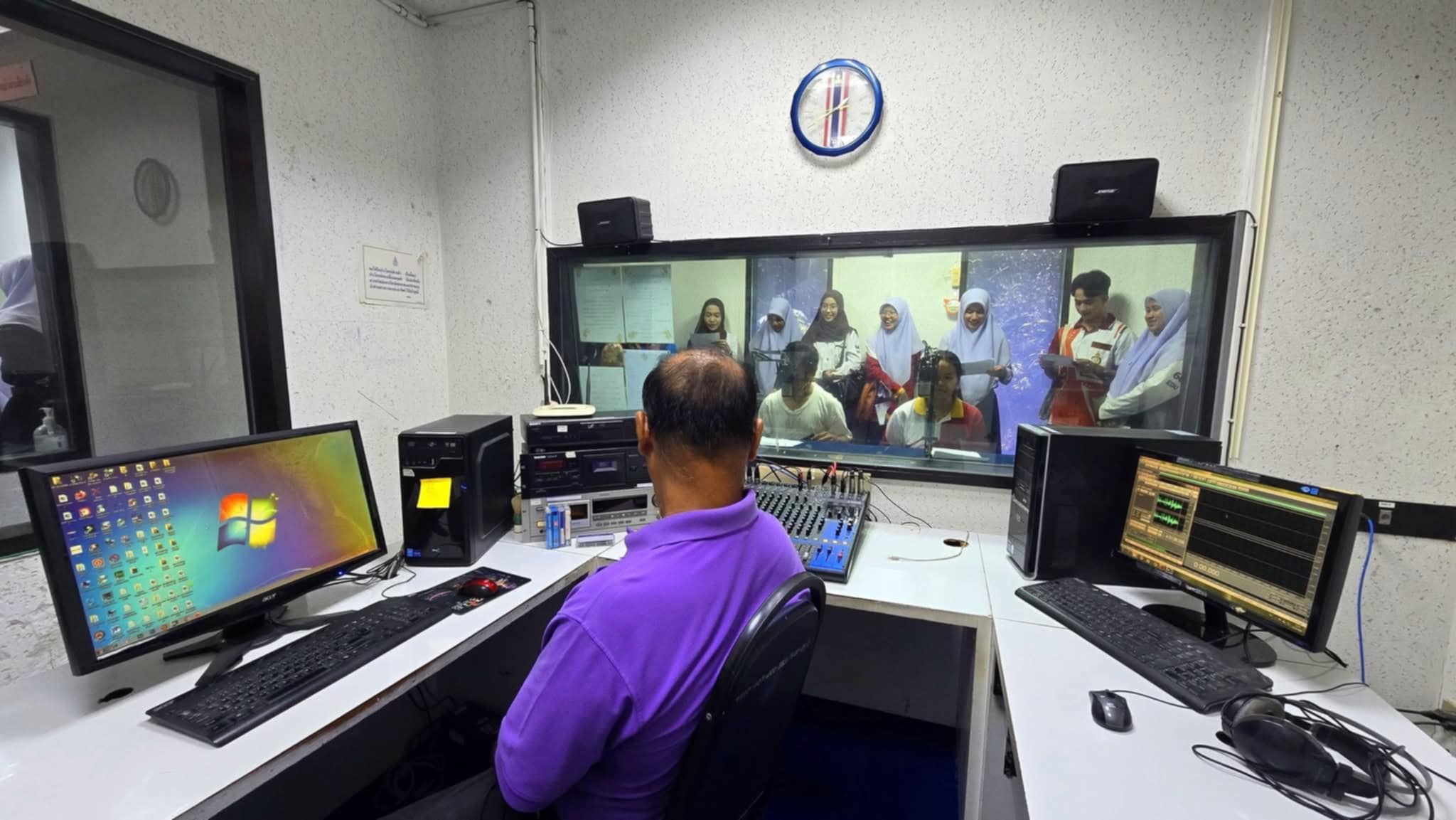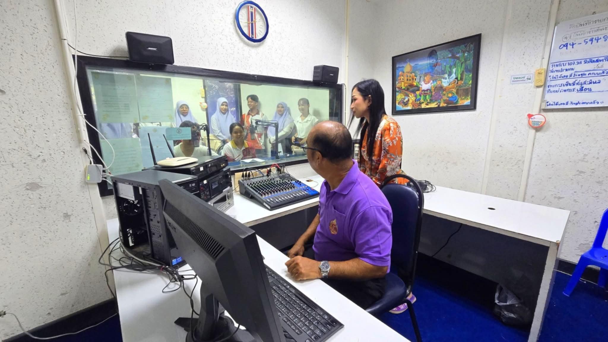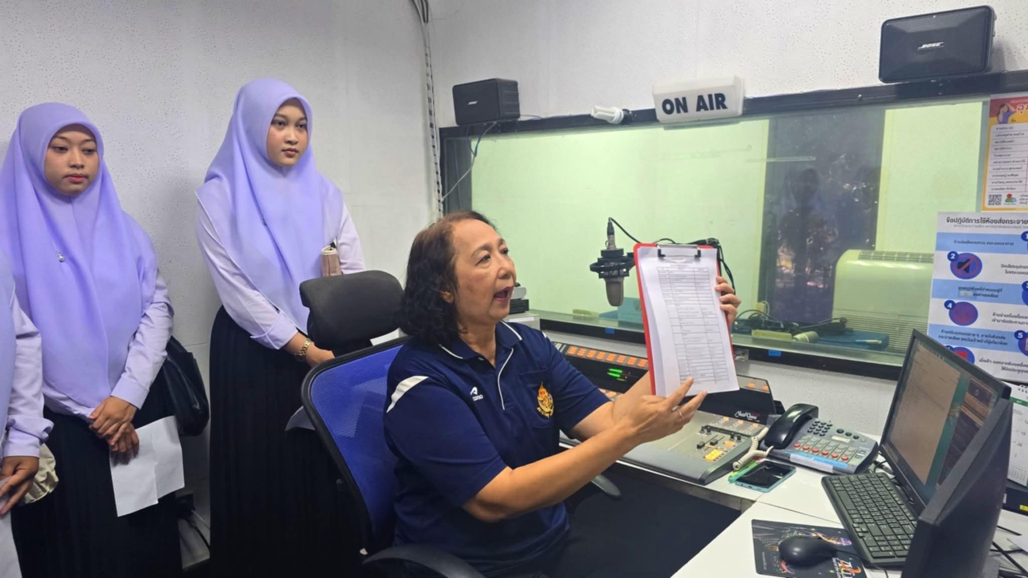 วันที่ 17 กรกฎาคม 2568 ณ สถานีวิทยุ ม.อ.ปัตตานี — นักศึกษาหลักสูตรศิลปศาสตรบัณฑิต สาขาวิชาภาษาและวรรณคดีไทย คณะมนุษยศาสตร์และสังคมศาสตร์ มหาวิทยาลัยสงขลานครินทร์ วิทยาเขตปัตตานี ศึกษาดูงานและฝึกปฏิบัติการออกเสียงภาษาไทย ในรายวิชา “การพัฒนาบุคลิกภาพและการออกเสียงภาษาไทย” (รหัสวิชา 411-111) โดยมี อาจารย์นันทพร แสงมณี เป็นอาจารย์ผู้สอน โดยมีผู้ร่วมกิจกรรม รวม 86 คน