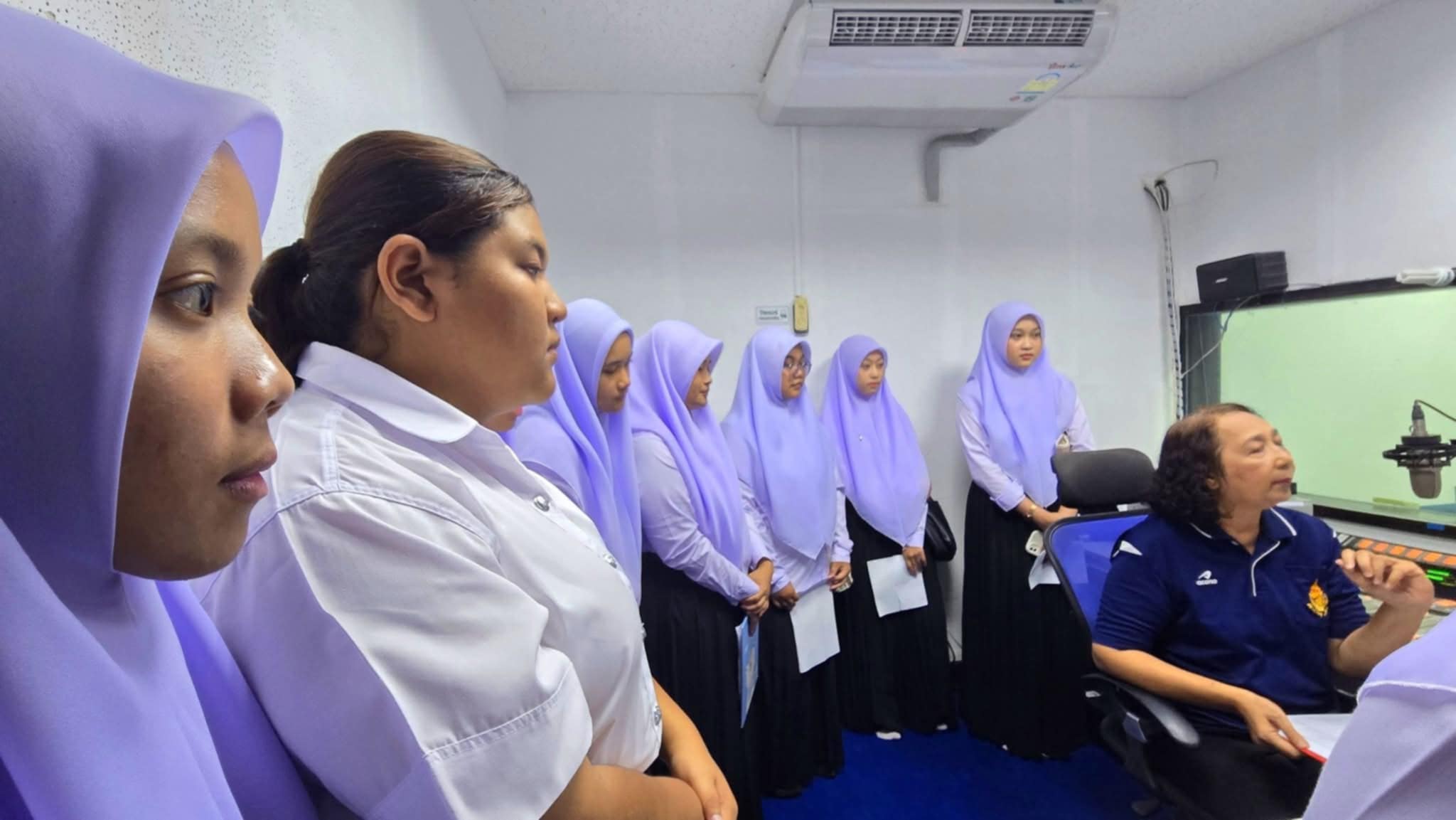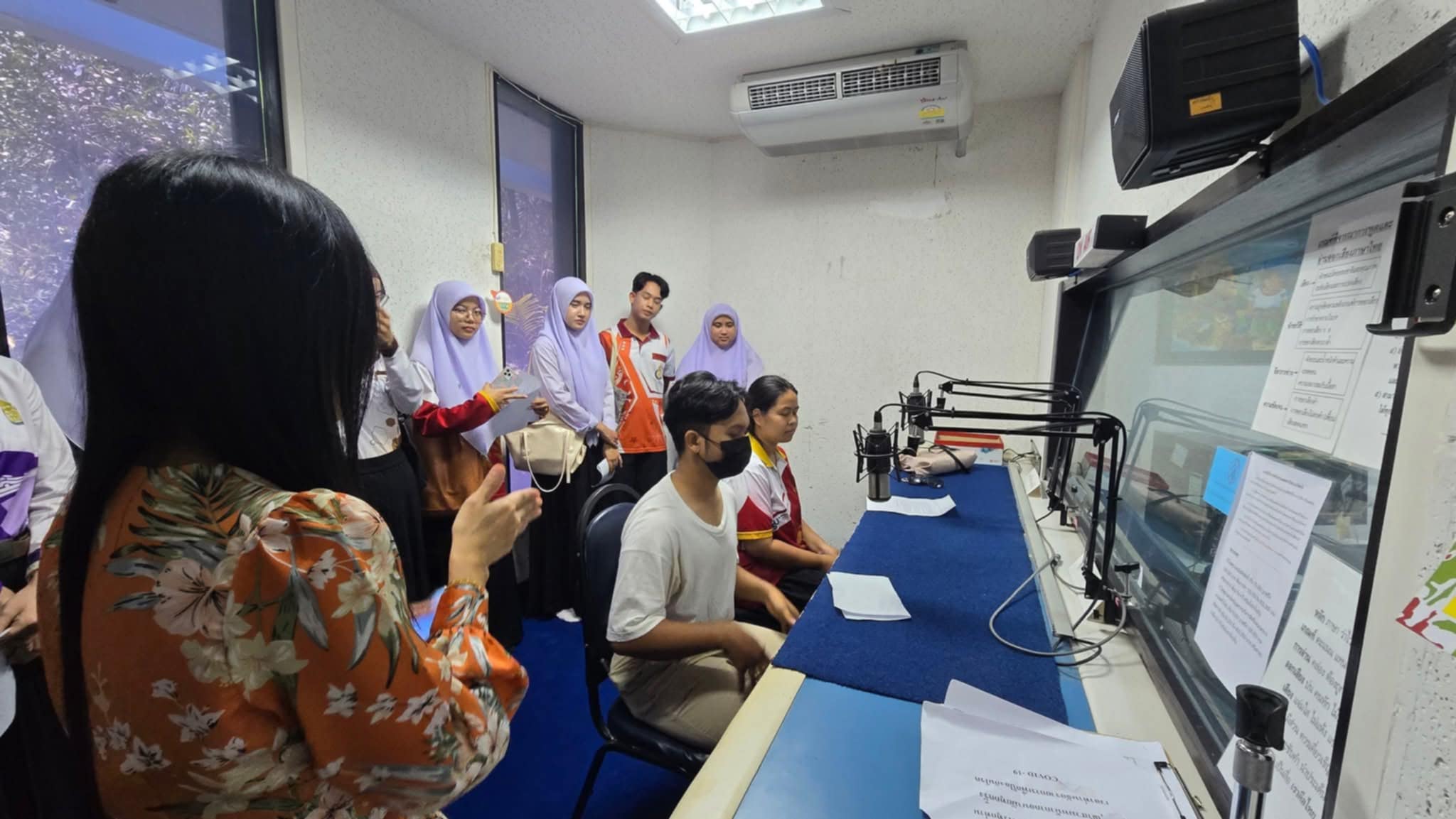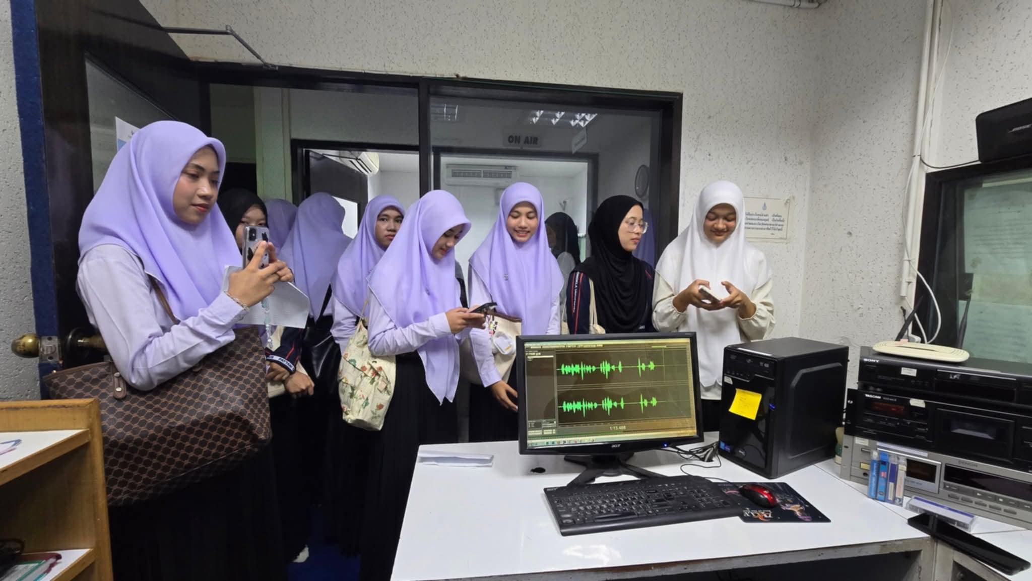 ระหว่างการศึกษาดูงาน นักศึกษาได้ฝึกอ่านออกเสียงภาษาไทยอย่างชัดเจน ฝึกอ่านข่าวในห้องส่ง รวมถึงทดลองจัดรายการวิทยุจริงในบรรยากาศที่เสมือนจริง เพื่อพัฒนาทักษะการพูด การสื่อสาร และเตรียมความพร้อมสำหรับการประกอบอาชีพในอนาคต