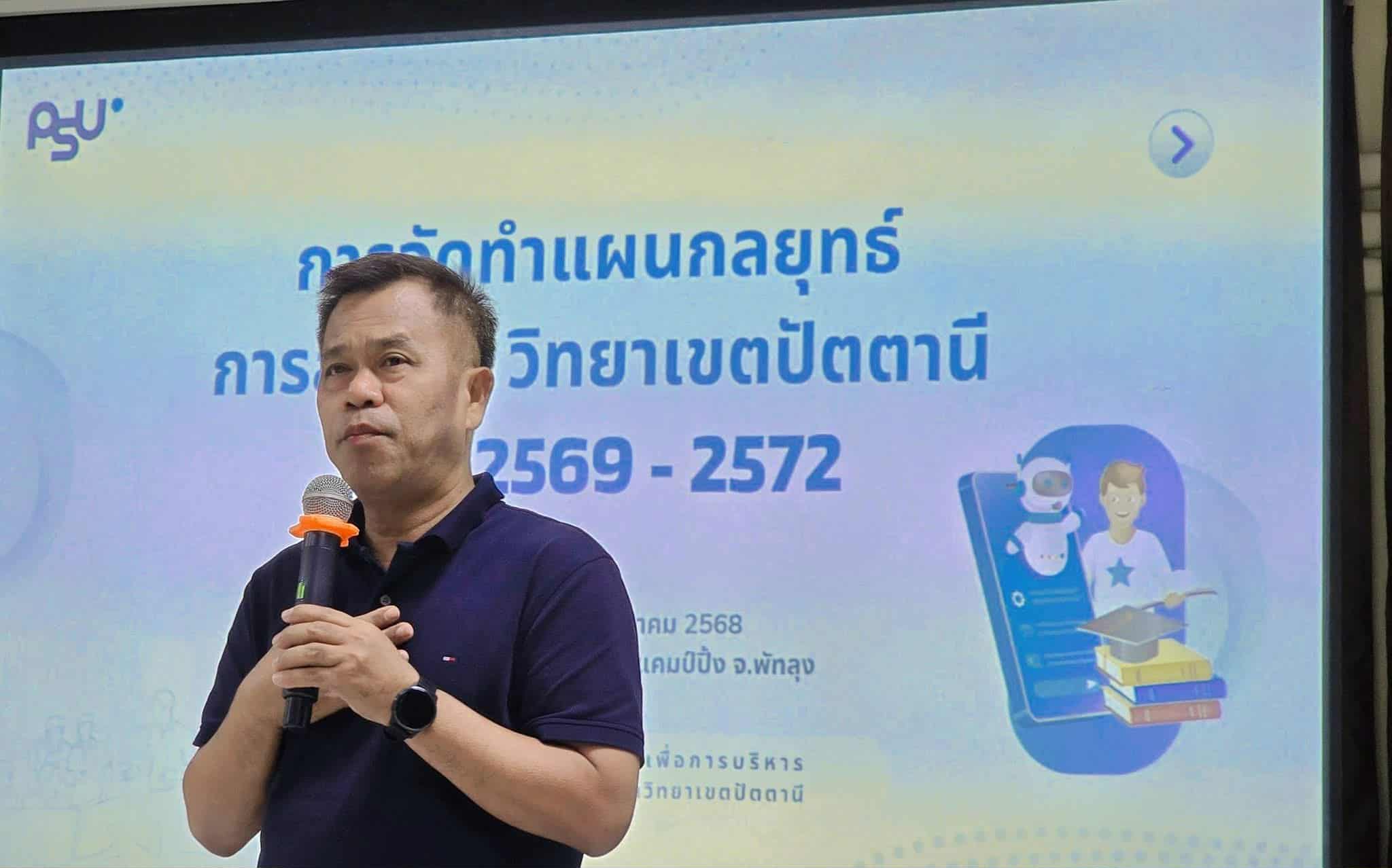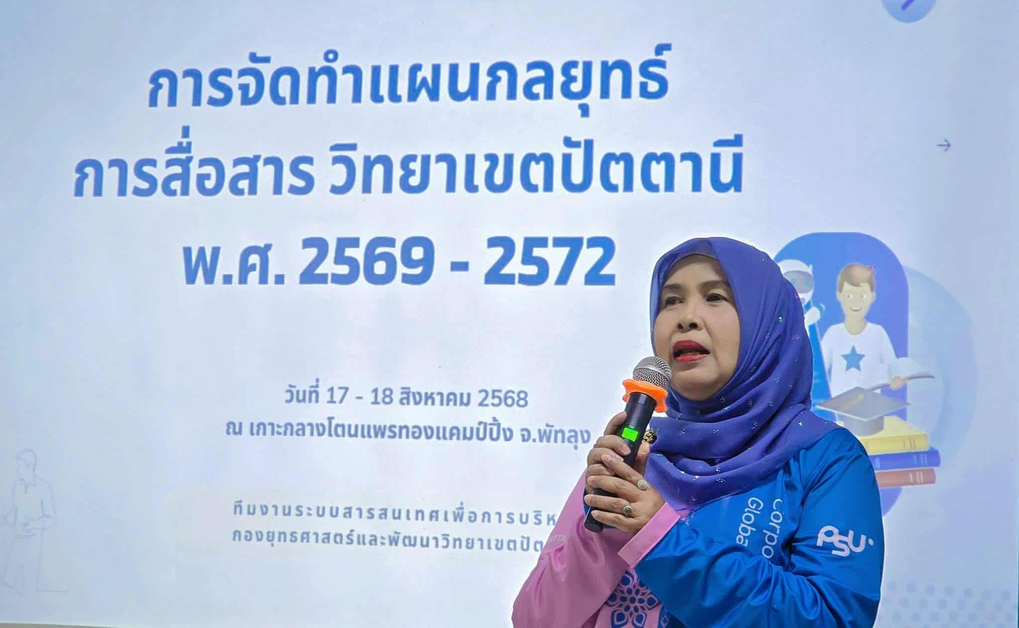 วันที่ 17 สิงหาคม 2568 นายบรรจง เฉลิมวงค์ ผู้อำนวยการสำนักงานวิทยาเขตปัตตานี กล่าวเปิดการอบรมเชิงปฏิบัติการเพื่อจัดทำแผนกลยุทธ์และแผนปฏิบัติการด้านการสื่อสารองค์กร (พ.ศ.2569–2572) มหาวิทยาลัยสงขลานครินทร์ วิทยาเขตปัตตานี ภายใต้ “โครงการขับเคลื่อนแผนการสื่อสารเชิงกลยุทธ์ วิทยาเขตปัตตานี” โดยมี นางซูรียะห์ โลหะสัณห์ หัวหน้าศูนย์สื่อสาริงค์กรและกิจการนานาชาติ กล่าวรายงาน
